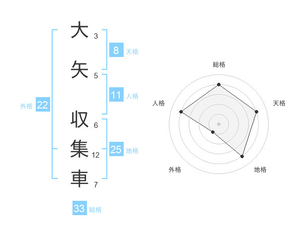 大矢 収集車さんを姓名の画数から五運を鑑定