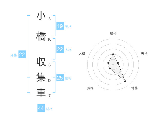 小橋 収集車さんの総格は44画の2点!