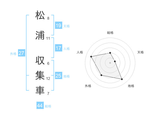 松浦 収集車さんを姓名の画数から五運を鑑定
