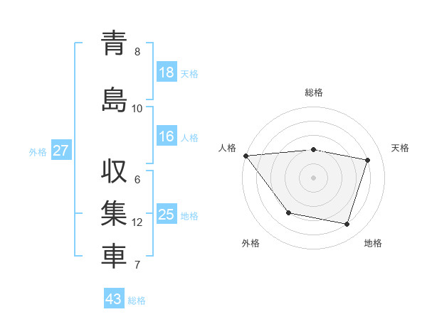 青島 収集車さんの総格は43画の2点!