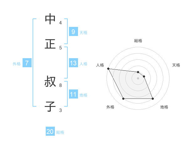 中正 叔子さんの総格は20画の1点!