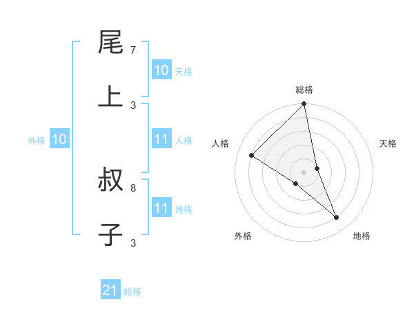 尾上 叔子さんの総格は21画の5点!