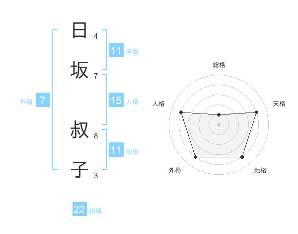 日坂 叔子さんを姓名の画数から五運を鑑定