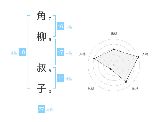 角柳 叔子さんの総格は27画の3点!