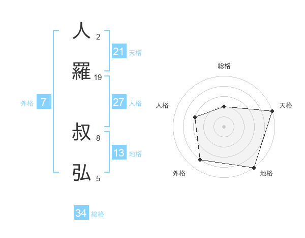 人羅 叔弘さんの天格は21画の5点!