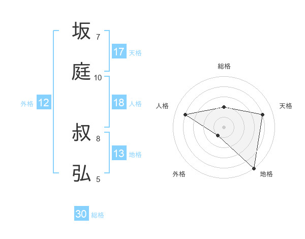 坂庭 叔弘さんの天格は17画の4点!