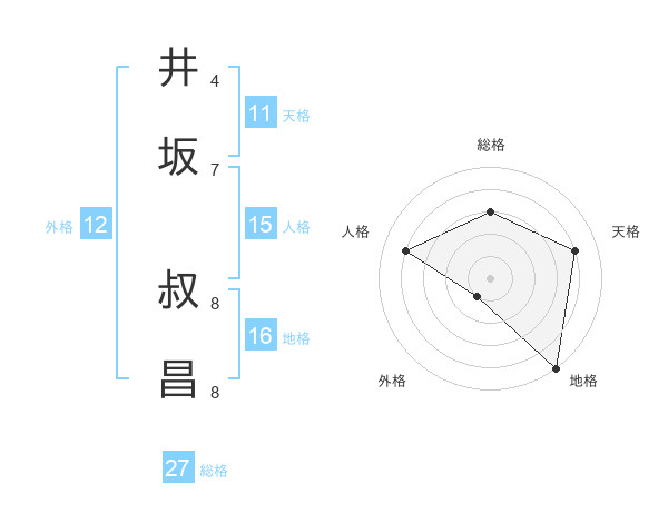 井坂 叔昌さんを姓名の画数から五運を鑑定