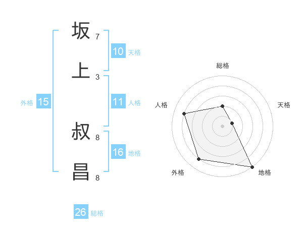 坂上 叔昌さんを姓名の画数から五運を鑑定
