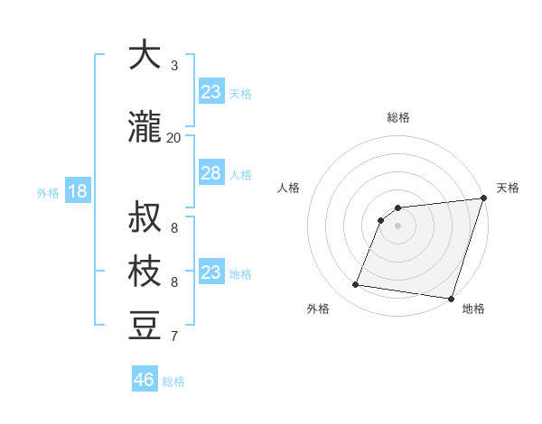 大瀧 叔枝豆さんを姓名の画数から五運を鑑定
