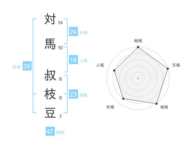 対馬 叔枝豆さんを姓名の画数から五運を鑑定