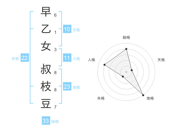 早乙女 叔枝豆さんの総格は33画の4点!