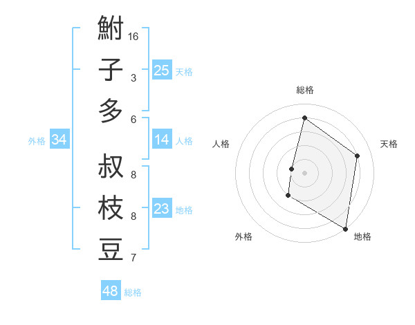 鮒子多 叔枝豆さんの総格は48画の4点!