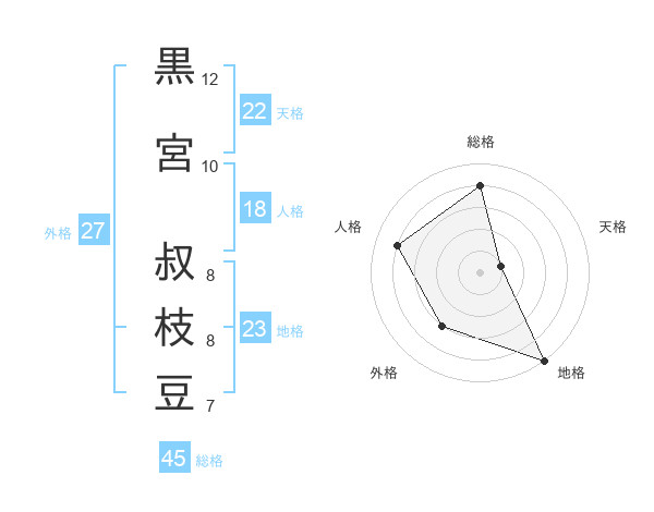 黒宮 叔枝豆さんを姓名の画数から五運を鑑定