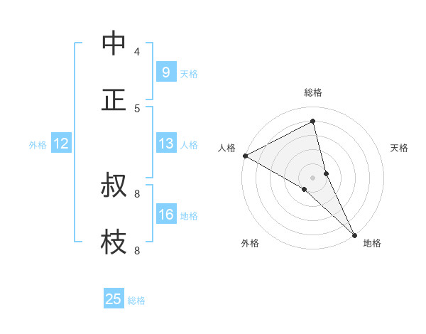 中正 叔枝さんの総格は25画の4点!