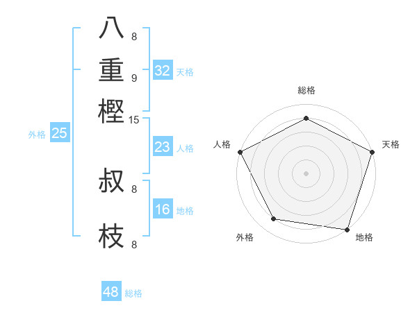 八重樫 叔枝さんを姓名の画数から五運を鑑定
