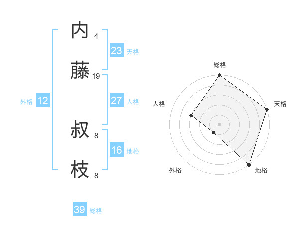 内藤 叔枝さんの総格は39画の5点!