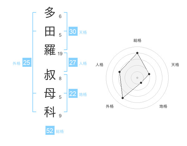 多田羅 叔母科さんを姓名の画数から五運を鑑定
