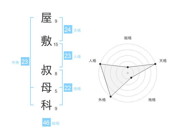 屋敷 叔母科さんの総格は46画の1点!