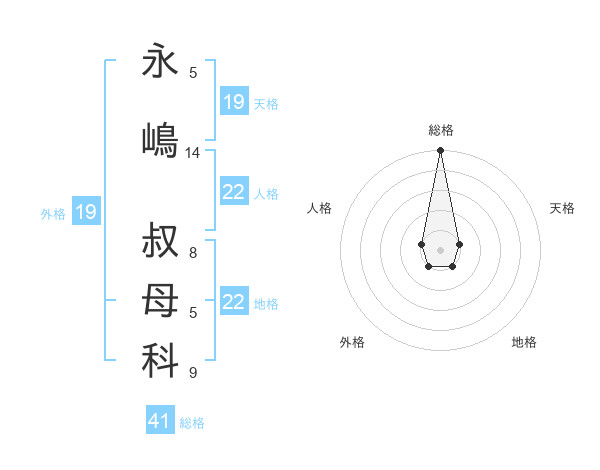 永嶋 叔母科さんを姓名の画数から五運を鑑定