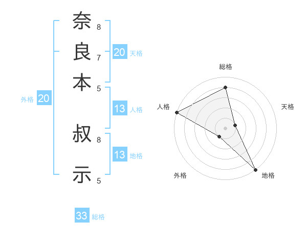 奈良本 叔示さんの総格は33画の4点!