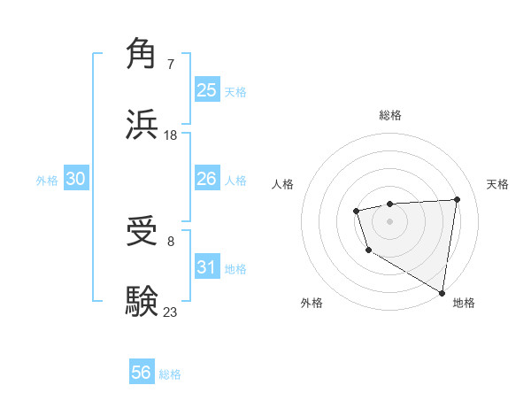 角浜 受験さんの総格は56画の1点!