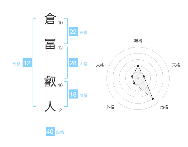 倉冨 叡人さんの総格は40画の2点!