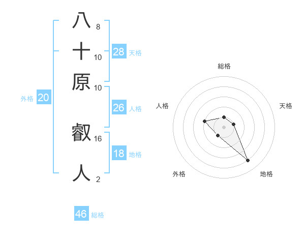 八十原 叡人さんの総格は46画の1点!