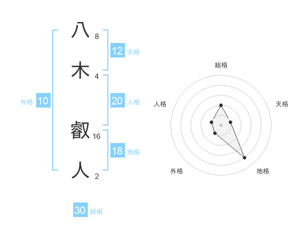 八木 叡人さんの総格は30画の2点