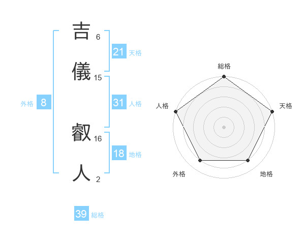 吉儀 叡人さんの総格は39画の5点!