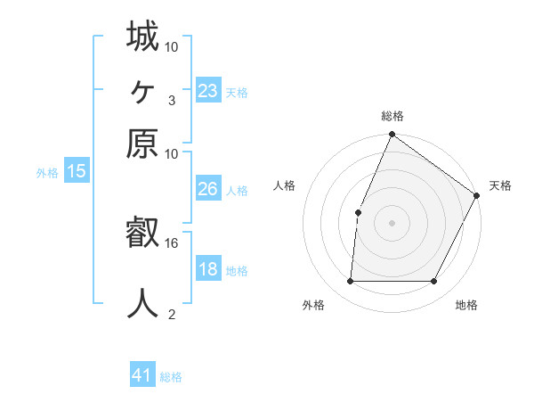 城ヶ原 叡人さんの総格は41画の5点!
