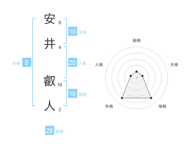 安井 叡人さんの総格は28画の1点!