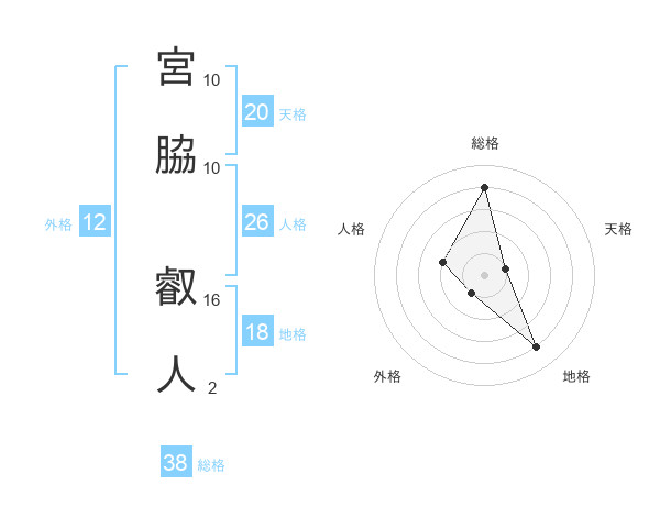 宮脇 叡人さんの総格は38画の4点!