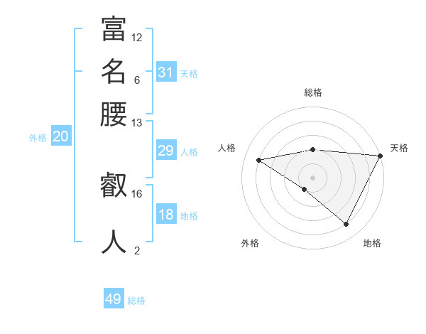 富名腰 叡人さんを姓名の画数から五運を鑑定