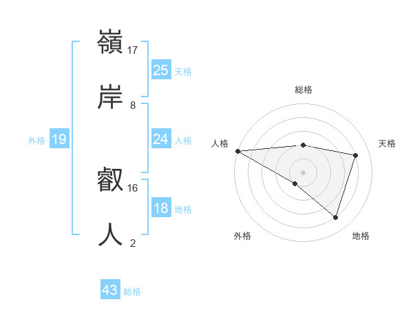 嶺岸 叡人さんの総格は43画の2点!