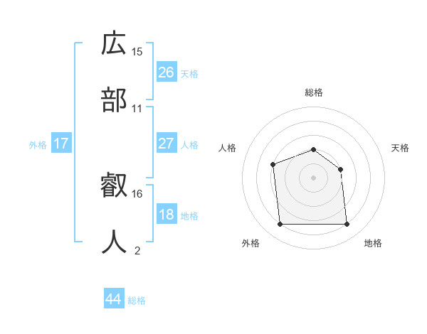 広部 叡人さんを姓名の画数から五運を鑑定