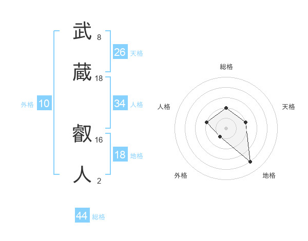 武蔵 叡人さんを姓名の画数から五運を鑑定