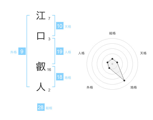 江口 叡人さんの総格は28画の1点!