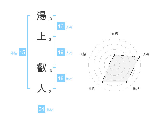湯上 叡人さんの天格は16画の5点!