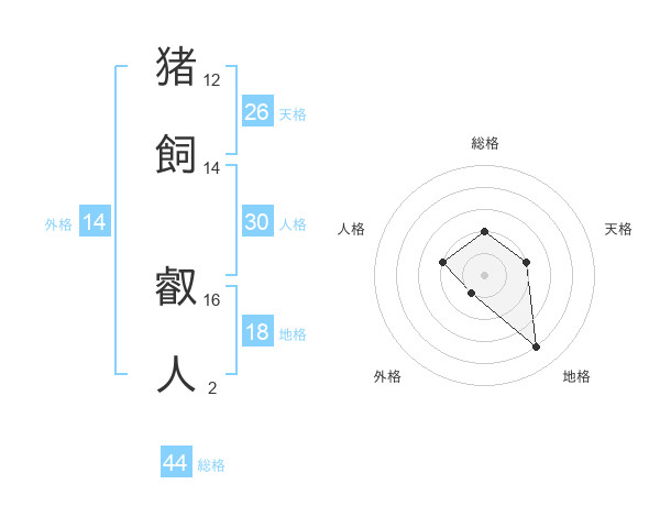 猪飼 叡人さんの総格は44画の2点!