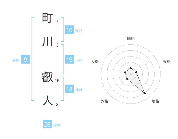 町川 叡人さんの総格は28画の1点!