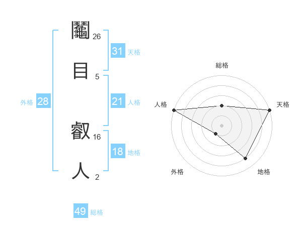 鬮目 叡人さんを姓名の画数から五運を鑑定
