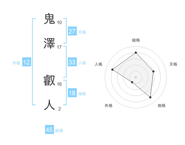 鬼澤 叡人さんの総格は45画の4点!