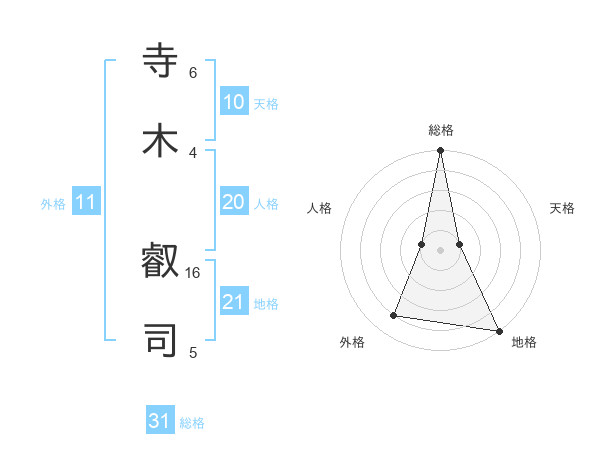 寺木 叡司さんを姓名の画数から五運を鑑定