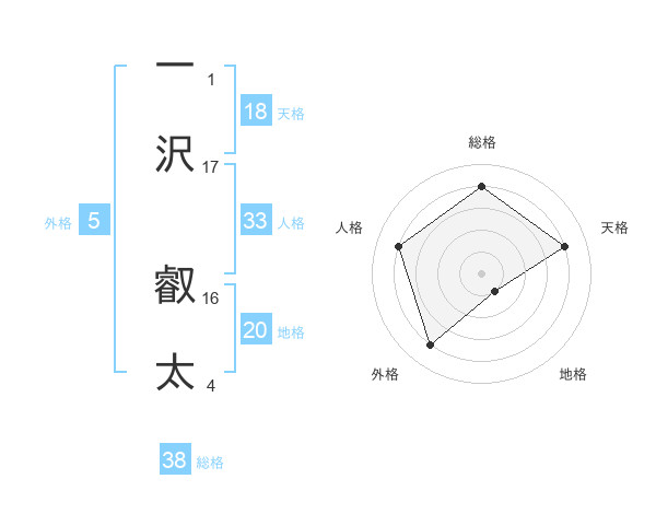 一沢 叡太さんの総格は38画の4点!