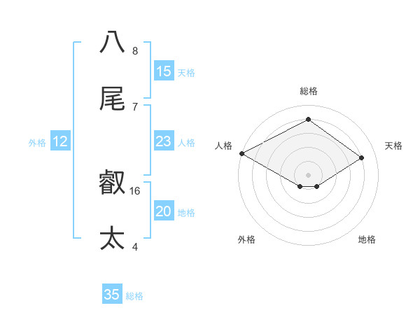 八尾 叡太さんの地格は20画の1点!