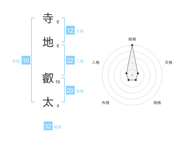 寺地 叡太さんの総格は32画の5点!