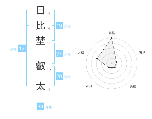日比埜 叡太さんを姓名の画数から五運を鑑定
