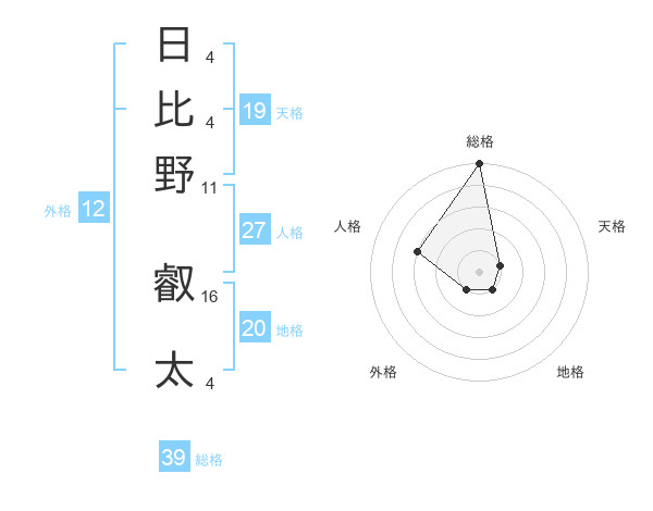 日比野 叡太さんを姓名の画数から五運を鑑定