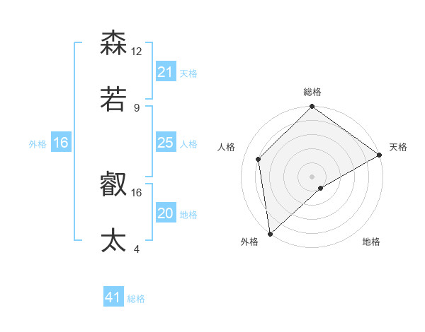 森若 叡太さんの外格は16画の5点!