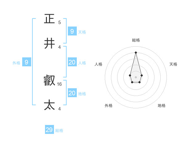 正井 叡太さんの総格は29画の4点!